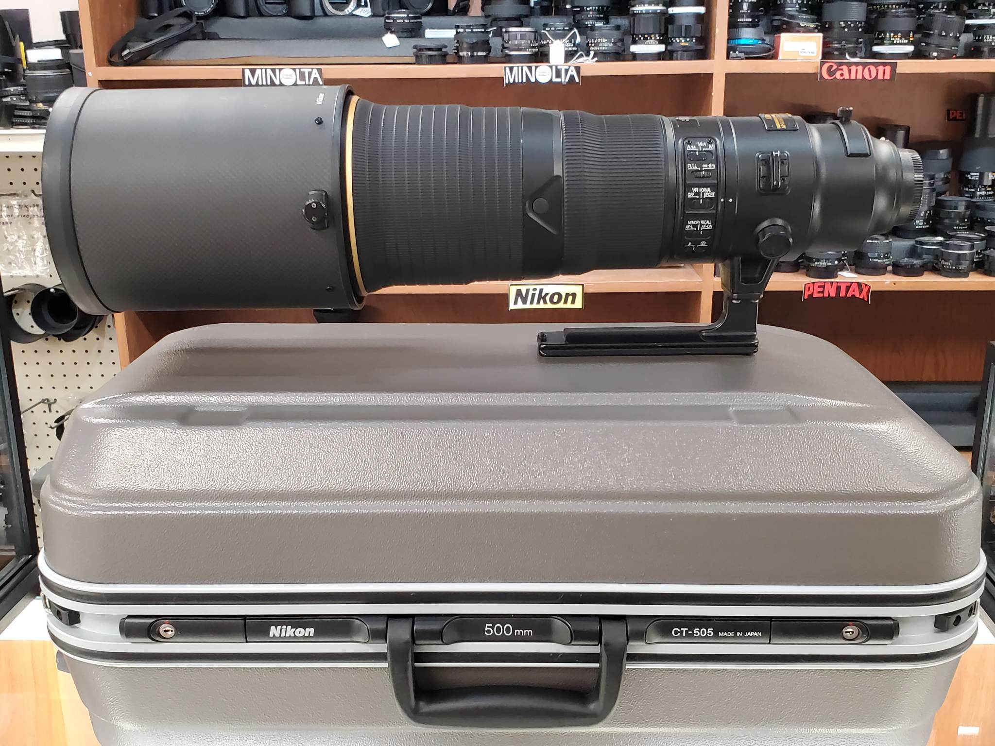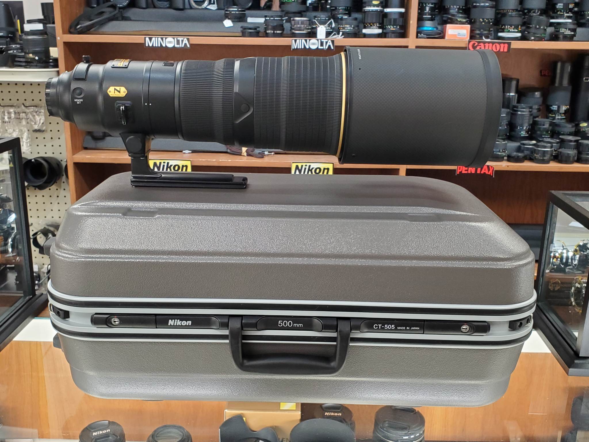 Capture incredible Wildlife or Sports shots with this almost Mint Nikon 500mm f/4E FL ED VR Super Telephoto lens, that's VERY hard to find used. The fast f/4 aperture at 500mm and lightweight ED glass elements combine to create a lens of the highest quality, perfect for professional photographers. Lighter than any previous version and sharper than the 600mm F4 and 800mm F5.6. Enjoy tack sharp and crisp images with reduced chromatic aberration and ghosting.